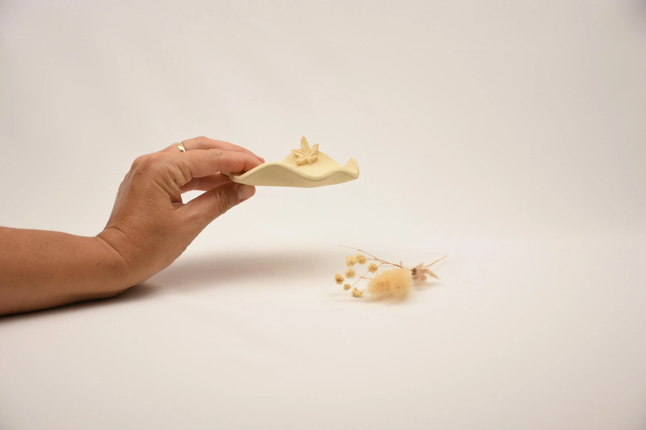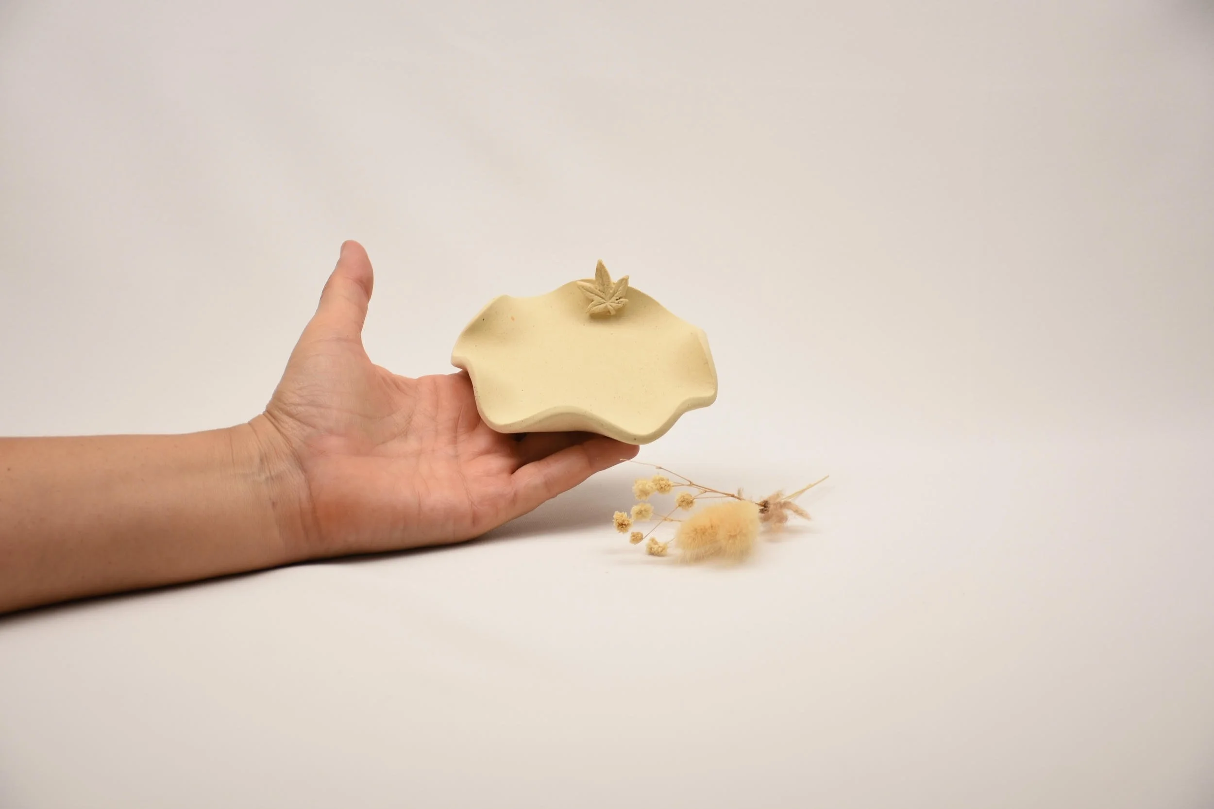 Speckled Clay Ashtray, Unglazed Handmade Pottery, Natural Leaf Catch-All Dish, Minimalist Earth Tone Smoker Gift